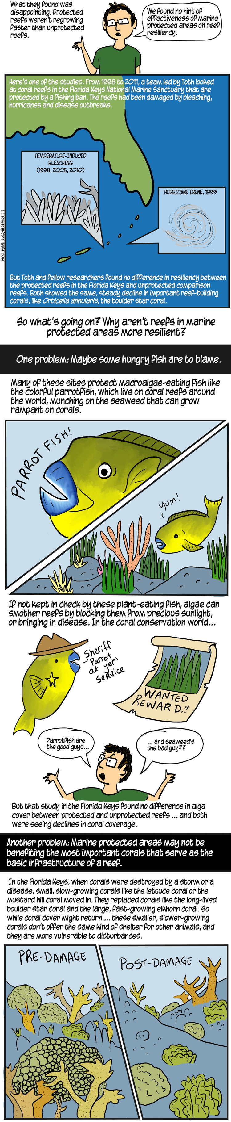 COMIC: The reef-builders face larger threats, scientists say. Chief among these is warming seas.