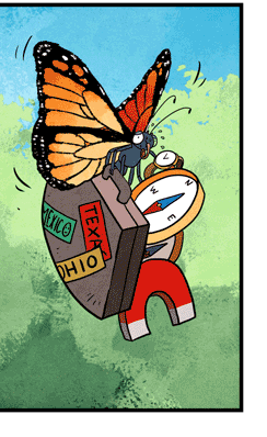 COMIC: The feisty orange-black butterfly uses a toolbox of biological tricks to find its way down to Mexico for winter and flap north again in spring. Here’s how scientists figured out those tricks — and what they don’t yet understand.