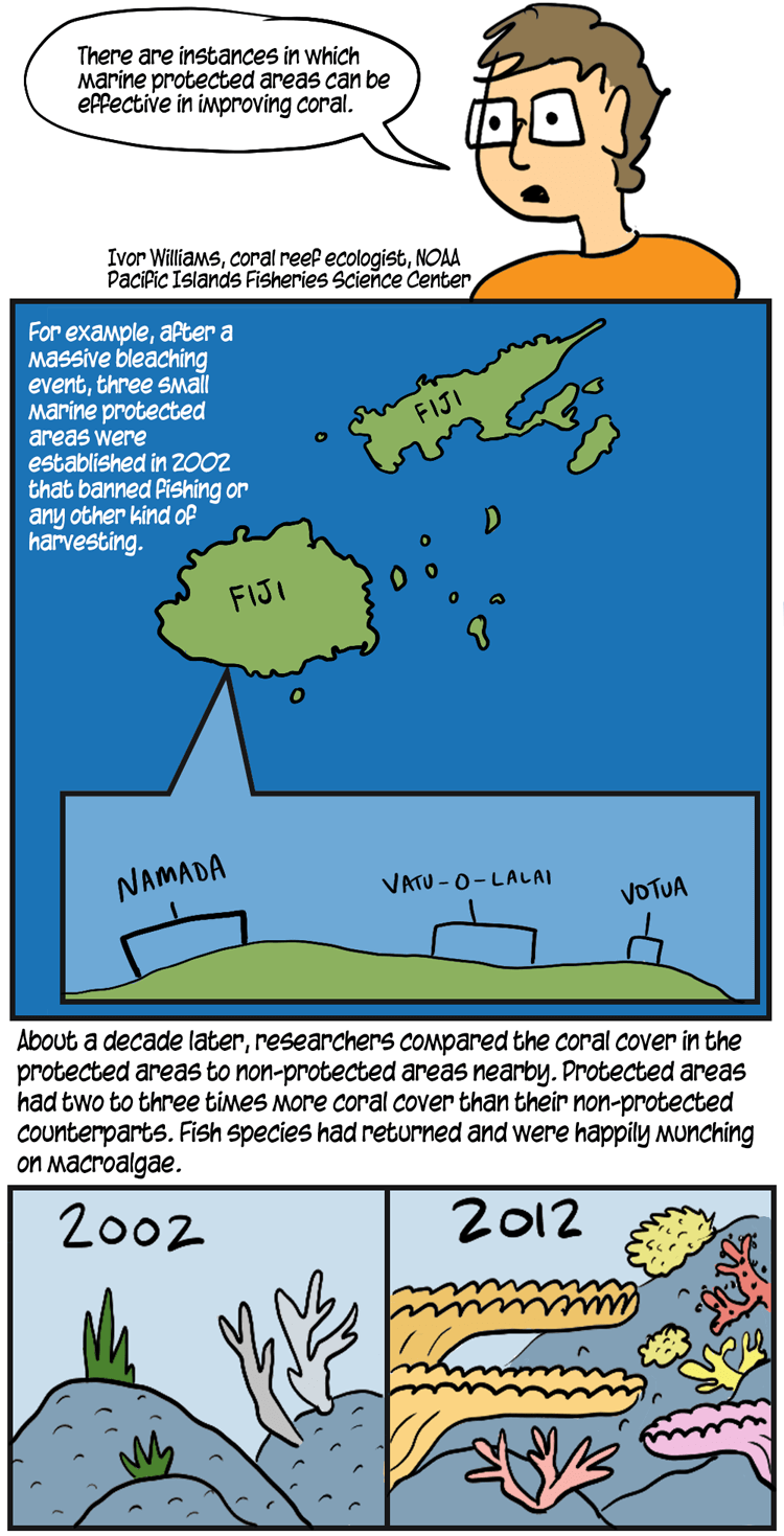 COMIC: The reef-builders face larger threats, scientists say. Chief among these is warming seas.
